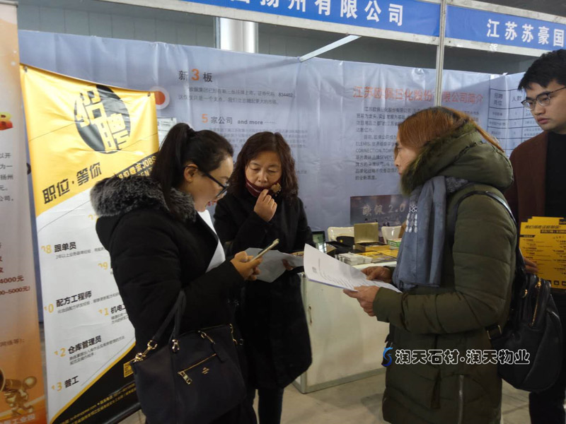 簡訊:隨著揚(yáng)州潤天物業(yè)服務(wù)有限公司業(yè)績的高效發(fā)展和新項(xiàng)目的承接,各部門同事齊心協(xié)力參加國展招聘會(huì),現(xiàn)場求職人員火爆,積極主動(dòng)咨詢各項(xiàng)事宜?,F(xiàn)場氣氛熱烈,招聘效果顯著,預(yù)示著2018年公司生意更加紅紅火火、蒸蒸日上。