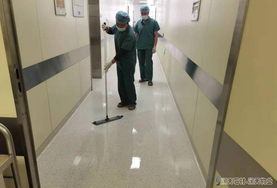 簡訊:石材培訓(xùn)人員正在指導(dǎo)新員工做PVC地板起蠟、打蠟的實(shí)操練習(xí)!-潤天石材