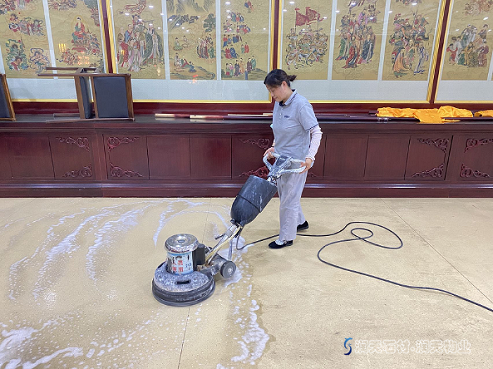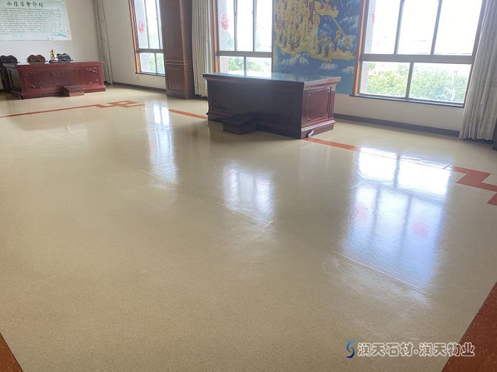 泰州凈因寺講堂PVC地板打蠟-潤天石材