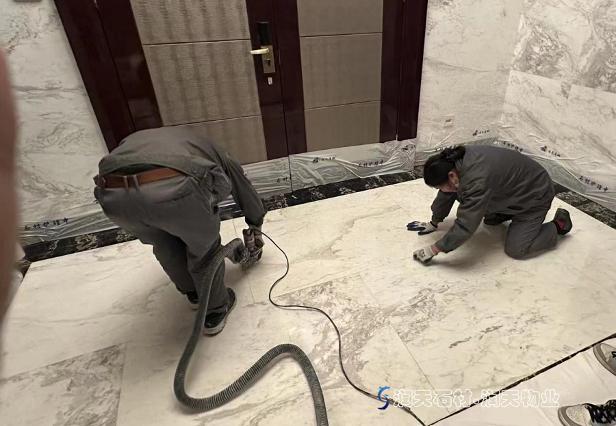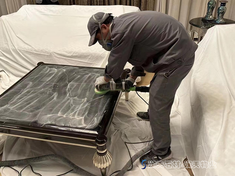 簡(jiǎn)訊:?jiǎn)T工夜里做石材翻新小樣。-潤(rùn)天石材